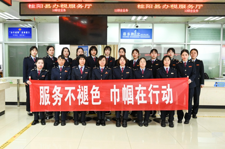 乘风摘月,追光逐梦,在平凡中作出贡献,于细微处彰显力量。桂阳县税务局办税服务厅的女干部们在县局党委的带领下,以优质的服务、过硬的本领、真诚的奉献不遗余力办好群众“关键小事”,用实际行动赢得了群众的信任与满意的同时,得到了上级部门的认可和肯定,获得了郴州市三八红旗集体、郴州市芙蓉标兵岗的光荣称号。