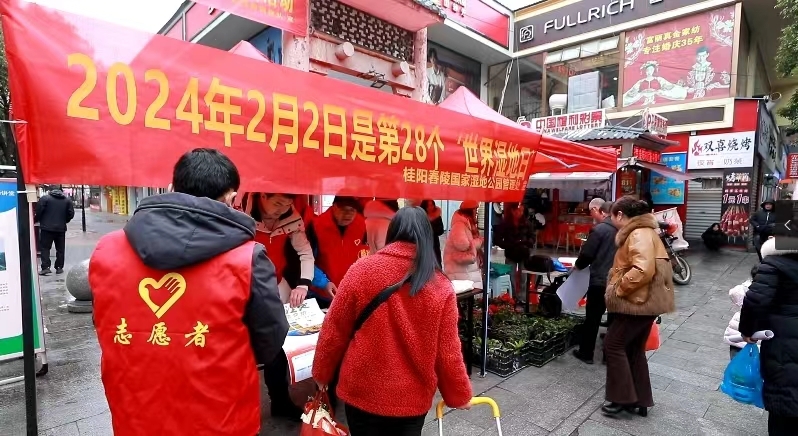 新桂阳1月30日讯(记者 邓明俊 刘克坚 蓝玲)1月26日,桂阳舂陵国家湿地公园管理处在蔡伦广场开展2024年“世界湿地日”宣传活动。