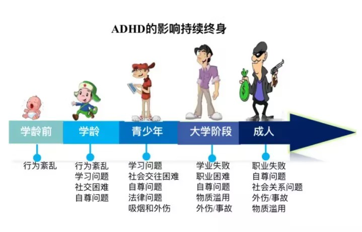 注意力缺陷多动障碍( ADHD)俗称多动症,是儿童期常见的一类神经发育障碍性疾病。表现为注意力不集中、不分场合的过度活动、冲动、任性,常伴有学习困难、品行障碍、适应不良等等。这些行为干扰了孩子在家和学校的正常活动,甚至还会影响身心健康以及成年后的家庭生活。多动症的症状大都在学龄前期(<6岁)就已经出现,而到了学龄期,随着生活学习的矛盾突出,症状也更为明显。