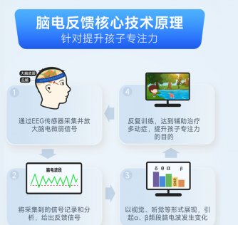 多动症患儿脑电波活动通常存在异常,脑电生物反馈可以帮助调节儿童的脑电波,使异常波减少,正常波增加,或者使脑电波各个成分达到优化比率。利用脑电生物反馈治疗仪可以察觉到儿童大脑的状态(比如是不是走神了),通过训练使儿童学会调控自身的脑电活动,改善大脑状态和功能,达到提升注意力、改善多动、冲动等问题。脑电生物反馈属于物理疗法,是由患者主动参与训练的过程,通过锻炼大脑实现自我调节身心的目的,可减少对药物的依赖,且无副作用。通过动画、音乐、游戏等反馈的形式,更容易被孩子接受,依从性更高。