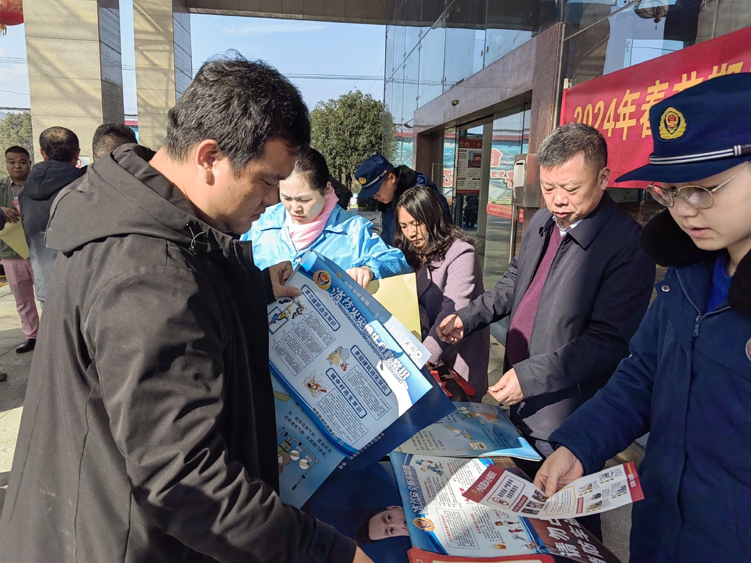 新桂阳2月1日讯(记者 周立志 实习生 鲍婉婷)1月31日,县总工会、消防救援大队和桂阳高新区联合开展2024年春节期间安全生产集中宣传活动。