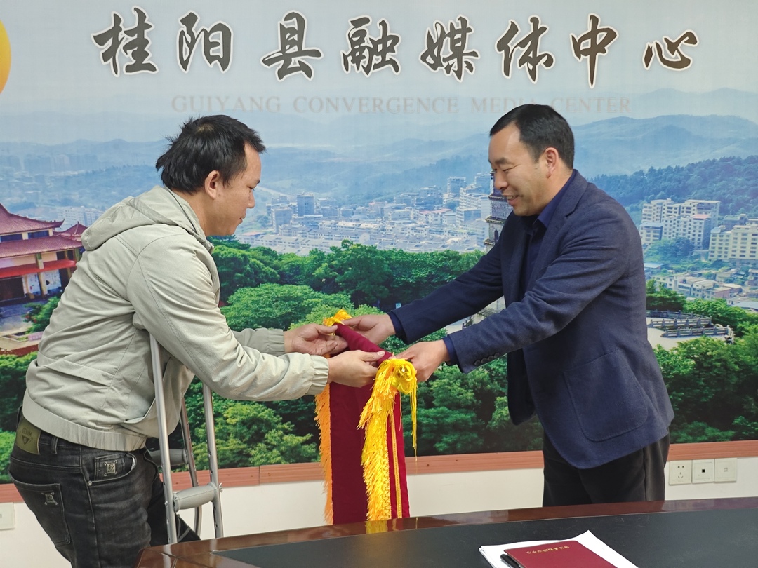 “这面锦旗是对你们工作的感谢与肯定,你们的认真敬业,让我深受感动!正因为有你们传播正能量,桂阳才会越来越美好。”邓喜忠激动地表示,他将这一面表达满满心意的锦旗送到桂阳融媒体中心,是为了感谢新闻工作者情系于民、积极高效的职业精神。