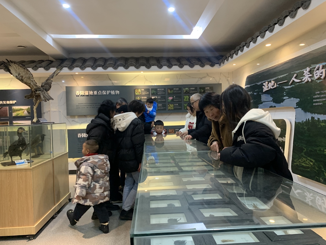 湿地是什么、湿地对水生态环境有什么作用……“湿地”奇妙行活动在舂陵国家湿地公园宣教中心开展。大家跟随宣讲员的脚步,走进湿地全景展示系统,沉浸式参观形态各异的珍稀鸟类和湿地植物标本,仿佛置身于湿地间,感受湿地之美。