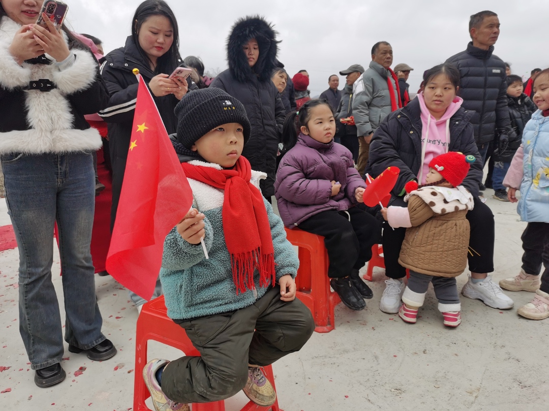 在流峰镇袁家湾村的活动现场,不少村民驻足观看。开场舞《启航》欢快动人、小品《共创文明城》引人深思、歌曲《吉祥》激昂慷慨,还有当下最为火爆的舞蹈《科目三》。一首首歌曲与舞蹈的轮番演出,不时赢得阵阵掌声,让群众在家门口享受一顿文化大餐。