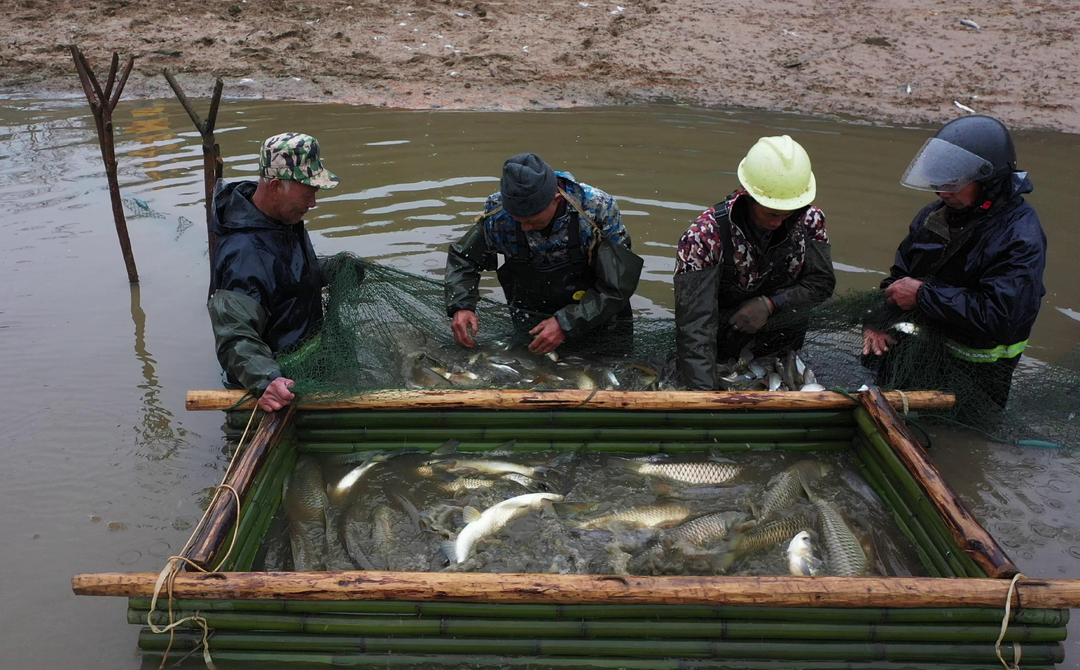 在正和镇朝阳社区,一大早,水库网鱼工人们正满心欢喜地将一筐筐丰收的鲤鱼搬上货车,经熟练分拣、充氧、装车后,很快,这批火红的鲤鱼就能出现在百姓的餐桌上。