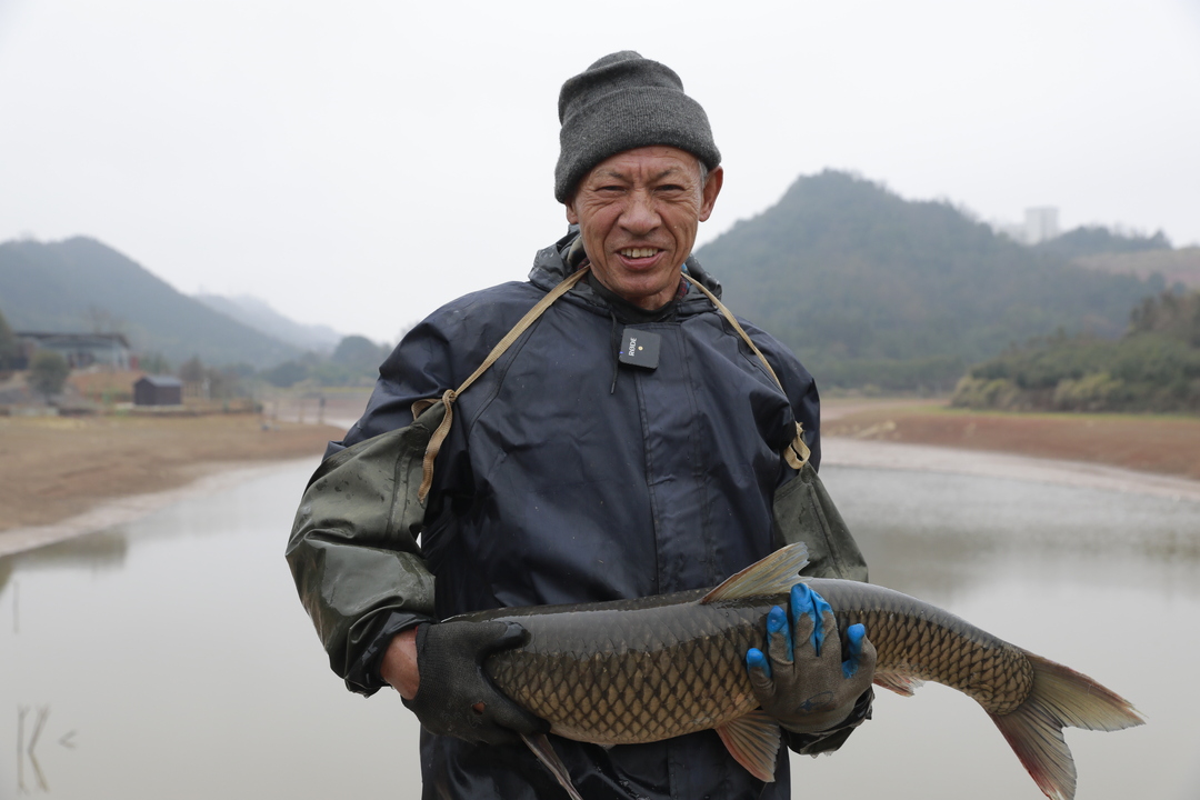 春节临近,朝阳社区水库鱼鲜市场需求量激增,每日需网鱼四至五次。工人师傅们身着渔裤,划着小船,推着竹筐,分点定位,在水面中央拉开一张直径近两百米的大网。伴着一声声嘹亮的号令,大家整齐划一地从四周向水岸收网,将一尾尾丰硕的鲜鱼带向岸边。肥硕的鲜鱼在水里活跃翻腾,再由工人师傅挑选出个头大品相好的鲜鱼捞入竹筐,运上早已在岸边等候的运输车,过秤充氧,送往各大生鲜市场。