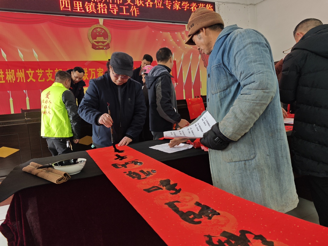 民进郴州市直属文艺支部会员到四里镇写春联送祝福