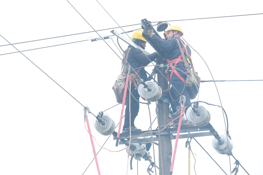 在冷冽的寒风中,电力工人做好各项安全措施后,爬上电杆抢修线路。同时,供电所的工作人员还会同乡镇干部到村民家中敲门入户送上“暖宝宝”,让村民暖身又暖心。