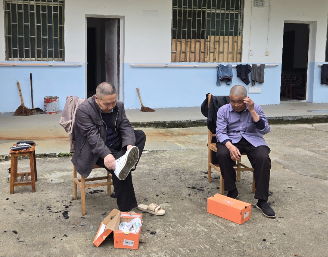 “我们今天吃了鸡蛋,领了鞋子,我们心里非常的高兴,非常的温暖,感谢你们志愿者对我们的关心。”樟市镇敬老院老人张运国说。