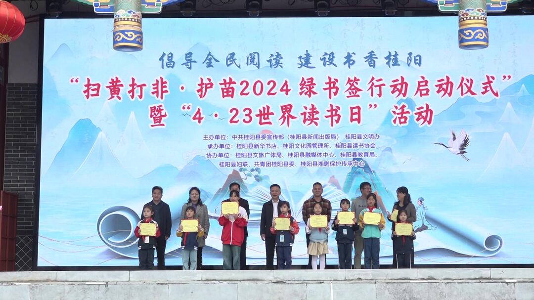 新桂阳4月23日讯 (记者:谭明艳 何禹军 李子璇)4月23日是第29个世界读书日,上午,我县开展“扫黄打非·护苗2024绿书签行动启动仪式”暨“4·23世界读书日”活动,旨在全县形成崇尚阅读、热爱阅读、自觉阅读的浓厚氛围。