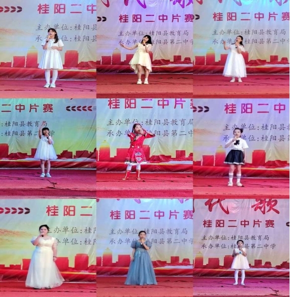 此次比赛共有20名选手参加比赛,经过一番激烈的角逐,评委们严格按照评分标准打分,最终,桂阳二中付梦琳同学的《把未来点亮》获得初中组独唱特等奖;桂阳二中李恩茜同学的《一条大河》获独舞特等奖;四里中学雷思宇同学的《梦中的婚礼》获独奏特等奖。在小学组,获得独唱特等奖的是塘市中心校尹诗涵同学的《香巴拉的小卓玛》;获独舞特等奖的是流峰中心校廖思琪同学的《阿拉瑞普》;获独奏特等奖的是塘市中心校周宇佳同学的《克罗地亚狂想曲》。