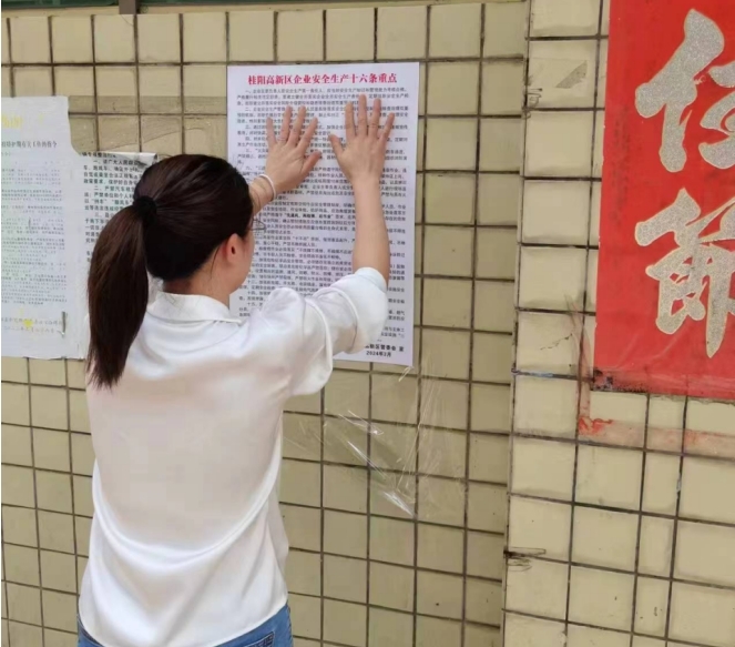 桂阳高新区企业安全生产十六条重点包含企业安全生产主体责任落实、安全管理人员岗位职责、特种作业安全注意事项等多项内容,内容详尽,语言通俗,实用性和可操作性强。园区工作人员除将这十六条印发通知书面告之企业外,还制成宣传画册,组织企业服务专员分发张贴至企业办公室、厂区、车间等显眼位置,时时提醒从业人员坚守岗位安全职责、规范操作,严禁“三违”行为,严格防范安全事故发生。