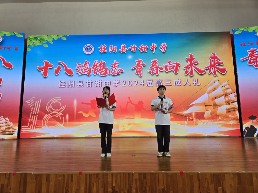 新桂阳5月14日讯 (记者 李子璇 欧阳宇轩 方卉)距离高考还有不到一个月时间,近日,甘甜中学全体高三学生一起过了一场“十八岁生日”。跨龙门、展豪情、博头彩,一场别开生面的成人仪式,让高三学子在激昂和感恩的氛围中铭记自身使命,树立成人成才的坚定理想。