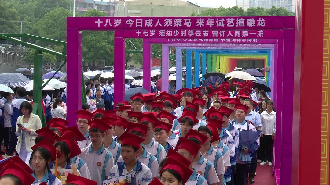 成人礼仪式在学校操场举行,现场气氛庄重而热烈。在主持人的引导下,高三学子们依次走过“成人门”,象征着他们正式踏入成年的行列。