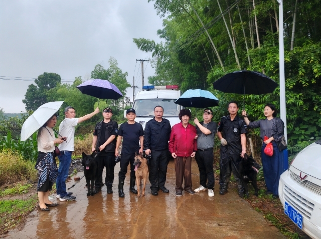 “老人年轻时在乡镇上班,老人意识模糊时,多次和家人说要‘下乡去’。”桂阳县公安局民警了解情况后,立即查看各出城口沿途监控视频、走访群众。在走访中,方元镇有一名村民称见过老人,民警立即带领警犬赶赴现场。“当时一名村民告诉我们,5月20日晚上10点多,有一名身穿红色外套的老人在村子附近经过,我们提取到了这一重要信息,缩小了搜寻范围。”桂阳县公安局刑侦大队警犬训导员张平军说。
