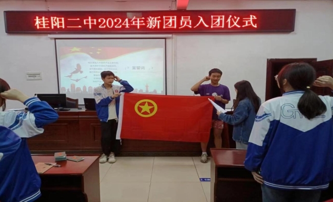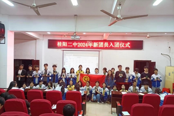 新桂阳 5月27日讯(通讯员 夏旭艳 )为大力弘扬五四精神,激励我全校广大共青团员、少先队员坚定不移跟党走、自强不息展芳华,走好入队、入团、入党的“人生三部曲”,形成二中德育教育品牌,凝聚青春力量。5月20日晚,桂阳二中举行了“青春奋进新时代 挺膺担当向未来”2024年新团员入团仪式。