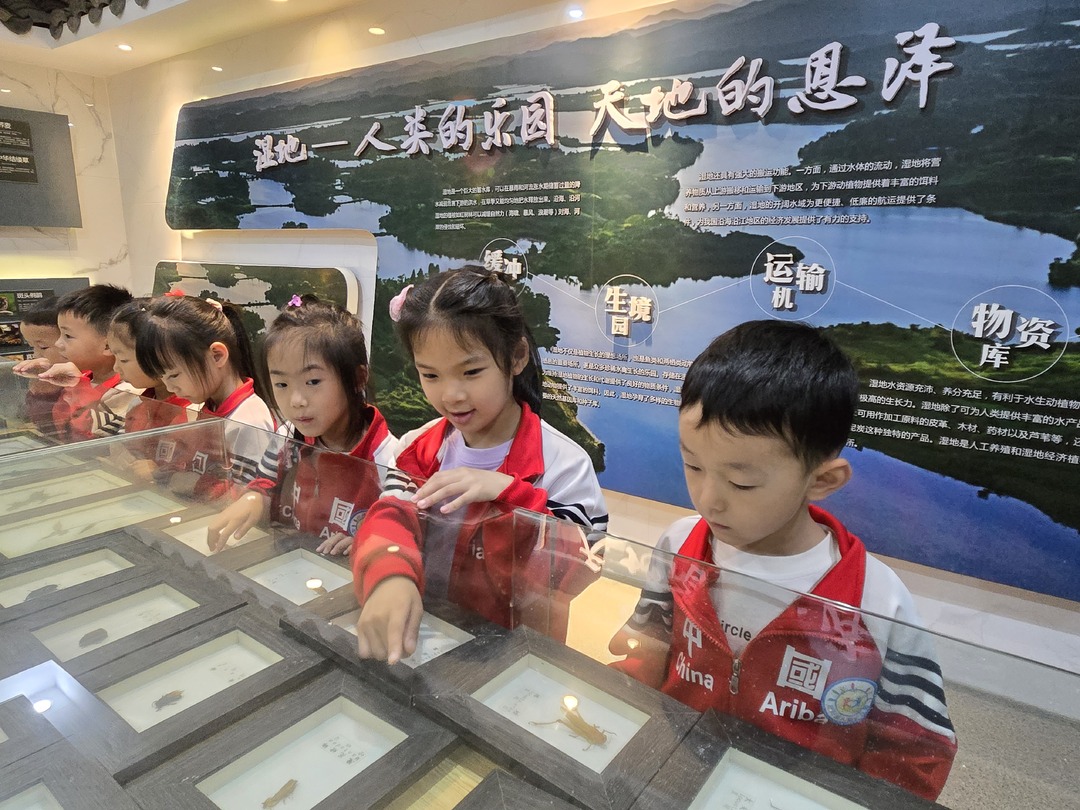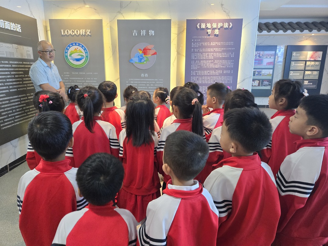 县人民幼儿园学生曾子川说:“今天我们认识了湿地,它是野生动物的家园,我们要珍惜湿地,爱护湿地,像保护眼睛一样保护生态环境。”