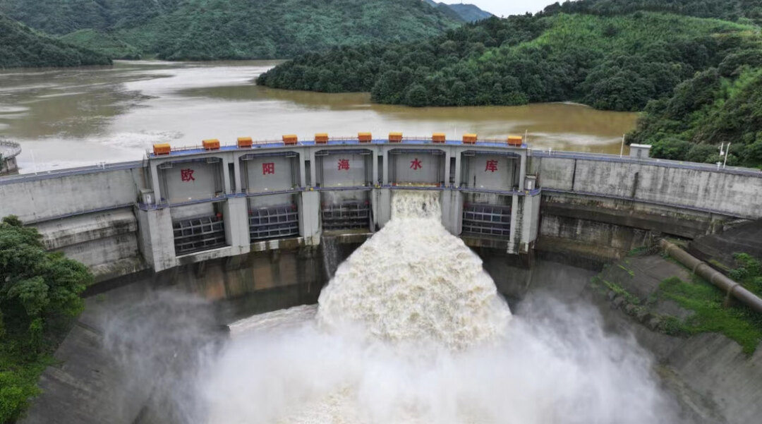 欧阳海水库,集雨面积54.09万公顷,设计灌溉面积4.85万公顷。由于连续强降雨导致水库水位上涨,6月17日8时,欧阳海水库坝前水位129.48米,超汛限水位0.98米。此次泄洪下放水量1.183亿立方米,拦蓄洪量0.218亿立方米,截至18日10时,水位下降0.64米,腾出库容0.2264立方米左右。