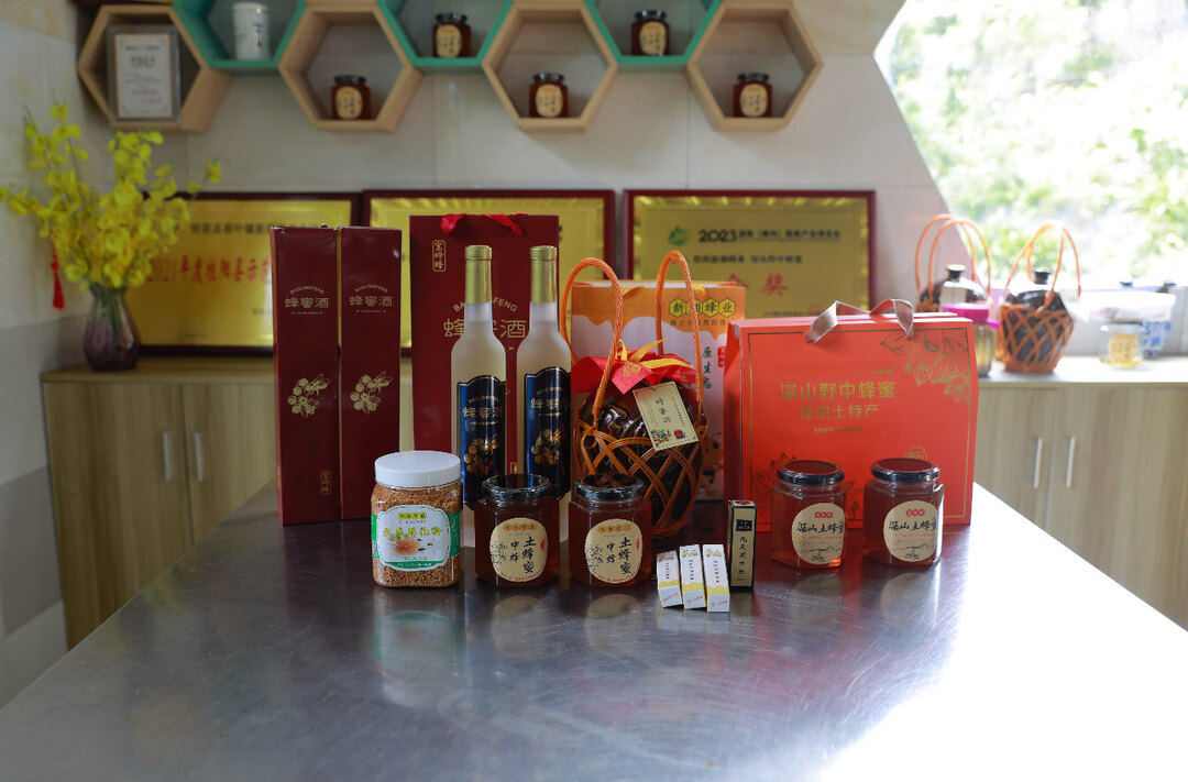 谭湘平的祖辈便是养蜂人,1997年,在外闯荡的谭湘平回到家乡,开始接手这份甜蜜事业,一养便是27个年头。农场里的蜂箱从最初的几十箱发展到了如今的1200余箱,年产蜂蜜8000余斤。除了蜂蜜,他还研发出了蜂蜜酒、蜂蜜唇膏、蜂蜜露等多种优质产品,年收入超过50万元。靠着养蜂过上幸福生活的谭湘平也成立了自己的家庭农场,为周边有意养蜂的村民提供蜂种与优质蜂王,并将几十年积累的养蜂经验倾囊相授。