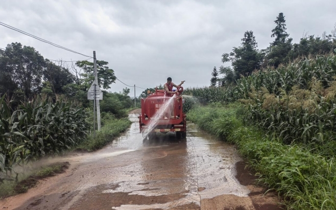 为及时消除道路安全隐患,和平镇交通、应急等部门立即采取措施,组织镇村干部、党员马上开展道路清淤行动。大家利用铁锹、扫帚、手推车等工具铲除厚重泥块,并将泥块运到旁边田地里,并开来消防车冲洗地面,使道路恢复了干净、整洁的“底色”。