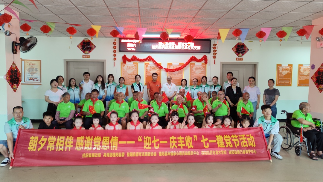 新桂阳 7月1日讯(记者 张珂荣)6月29日,县民政局在县康乃馨养护中心开展“朝夕常相伴,感谢党恩情——迎七一 庆丰收”建党节活动。