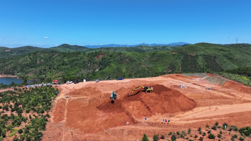 在洋市风电场的施工现场,机声隆隆,两台挖掘机正挥舞铲斗开挖风电场升压站地基。该项目横跨洋市镇、樟市镇、雷坪镇,项目由中电建新能源集团股份有限公司投资,设计安装16台单机容量为5MW的风力发电机组,其中塔架最大直径为5米,总高度107米。总装机规模为80MW,总投资5.8亿元。