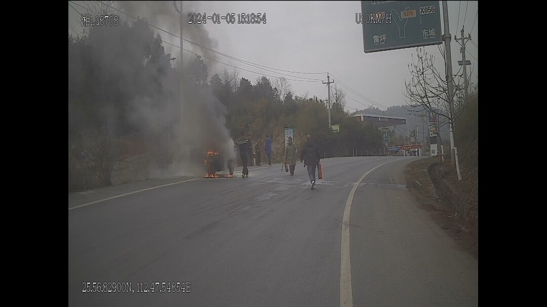 2024年5月8日下午,就在记者采访他的第二天,朱林宜驾驶公交车途经樟市镇路段时,看到路边有一辆轿车着火,他又一次挺身而出,成功将火扑灭,现场视频被央视网转发点赞。