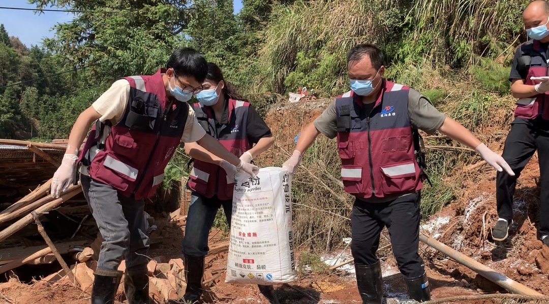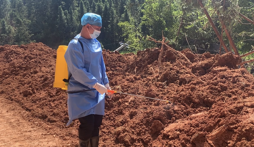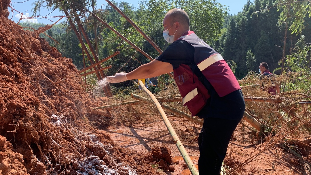 桂阳县对口帮扶行动队队员雷敏敏告诉记者:“这里地势复杂,面积较大,再加上天气炎热,此前道路未通,动物尸体已经发生腐败发臭,所以消杀工作难度很大。”