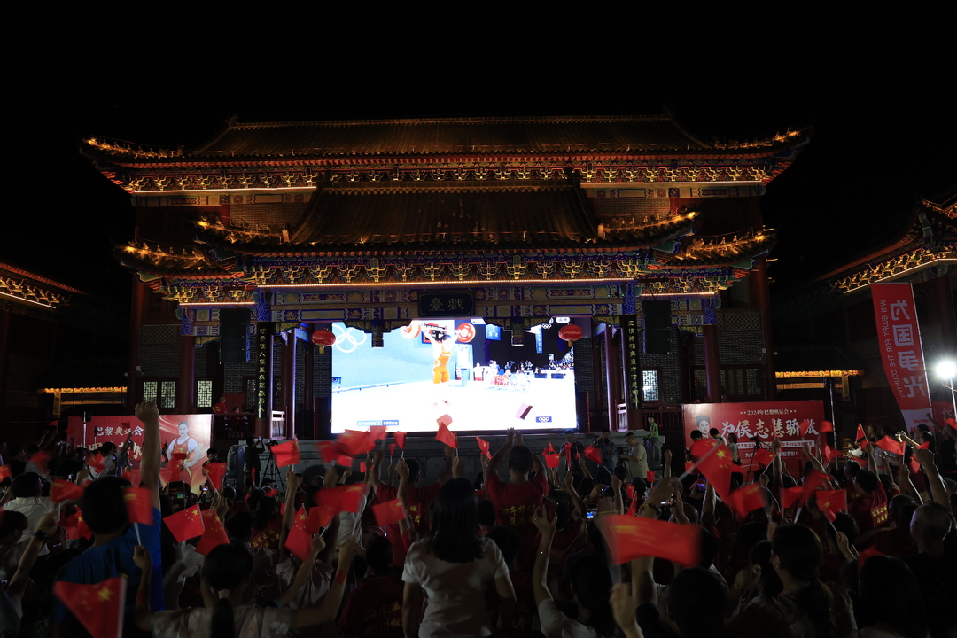在桂阳县文化园古郡城,罗诗芳的家人、启蒙教练和千余名家乡群众一同观看比赛直播,见证夺金时刻。