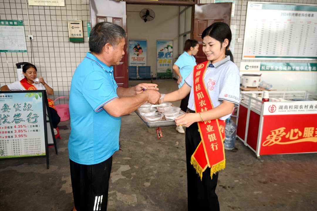 连日来,和平烟草站、祥和烤烟合作社携手桂阳农商银行、桂阳农业银行等,共同开展了向一线工作人员及烟农送热心茶、暖心粥的活动。一杯杯清香的茶和一碗碗美味的红豆粥经由工作人员之手传递到收购人员和烟农手中时,他们的脸上洋溢出了感激与欣慰的笑容。