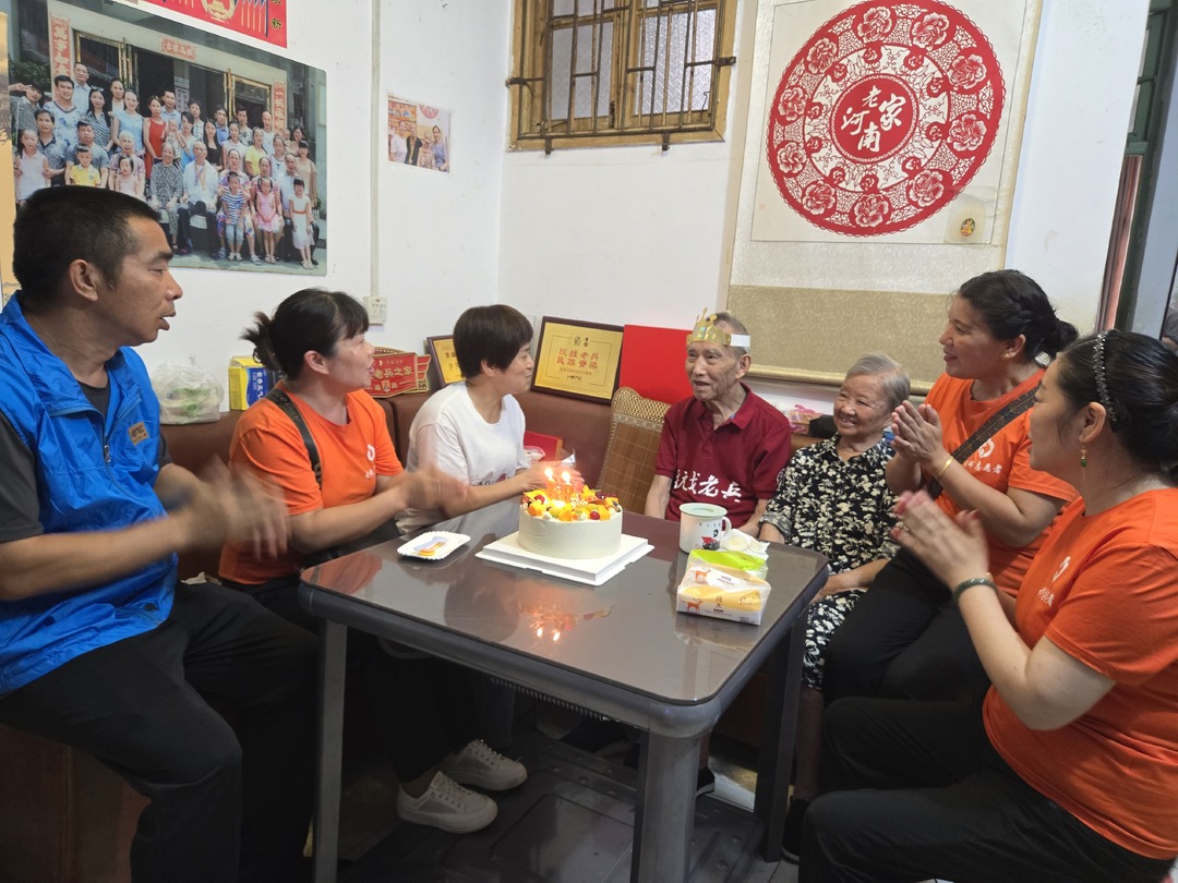 古郡志愿者协会秘书长张小红说:“我们来到爷爷家送上生日慰问,希望通过我们社会各界的力量让这些民族英雄、抗战老兵度过幸福快乐的晚年,感谢他们当年的英勇奋战换来了我们今天的幸福和平。”