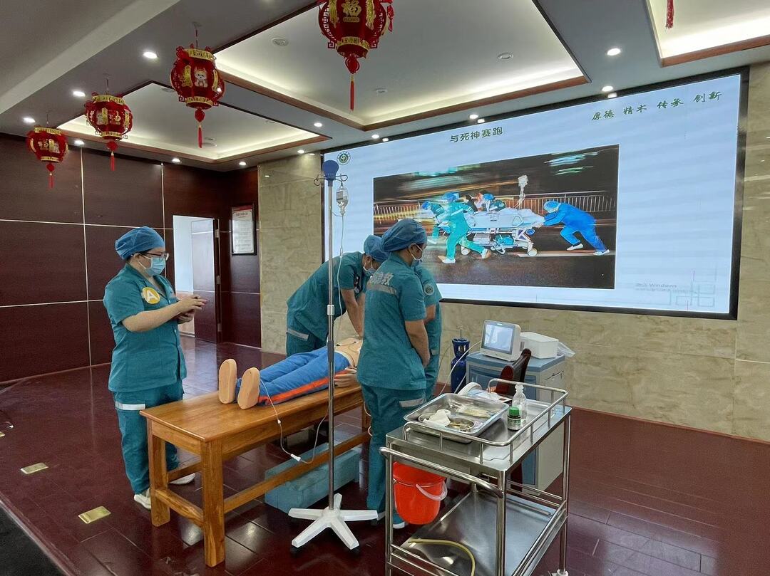 随后,重症医学科、急诊科医护人员进行团队心肺复苏演示,大家现场模拟施救过程,展示急救反应、意识判断、胸外心脏按压的规范操作,充分展现了医护人员良好的心理素质和扎实的急救技能。