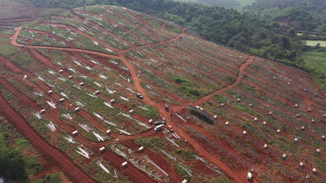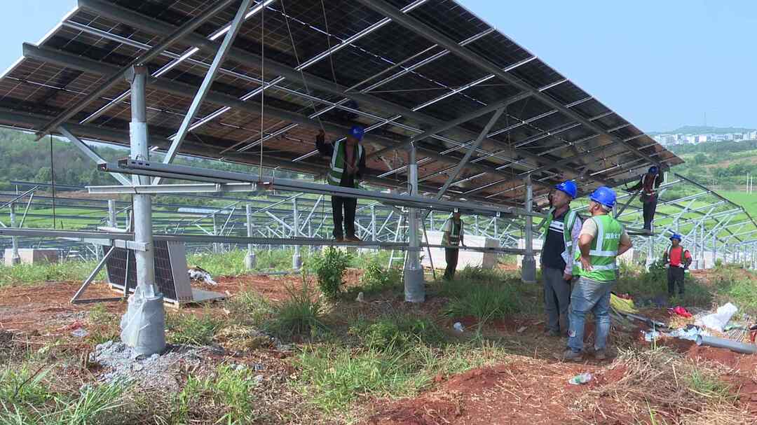 中国能建湖南火电桂阳陈溪村项目经理贺淑繁说:“目前整个施工现场我们投入了200余号施工人员,在全力抢进度,一个是升压站和汇集站,储能站这边已经在设备安装,我们光伏区这个支架及组件也在全面安装,我们的输送线路已全面拉通。”