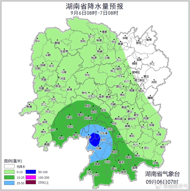 具体来看,今天白天到晚上,湘西南、湘南多云间阴天有小到中等阵雨或雷阵雨,其中永州中北部大雨,永州(市区、东安、冷水滩、双牌)局地暴雨,其他地区多云间晴天,部分地区有阵雨或雷阵雨;北风2~3级,雷雨时局地阵风7~8级;最高气温湘东35~37℃,湘西北32~34℃,其他地区30~32℃;最低气温湘东26~28℃,其他地区24~26℃。