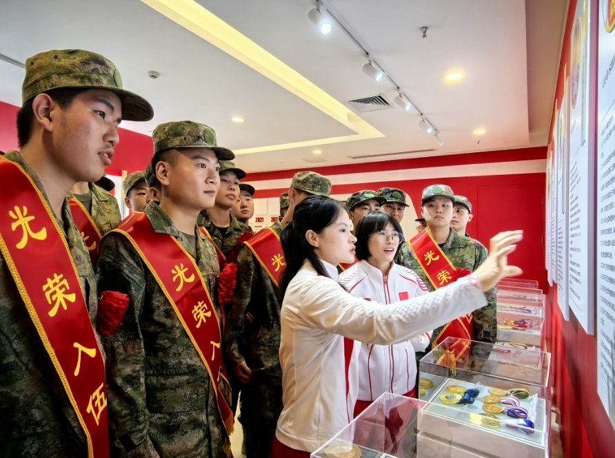巴黎奥运会冠军罗诗芳说道:“生在国旗下,长在春风里,我们身处最好的时代,虽然和新兵在不同的平台,但是都有着共同的坚定信仰和美好愿景,希望我们都能更好地传承‘红色基因’‘冠军精神’,让青春之花为祖国绽放,书写奋斗强军的精彩篇章。”