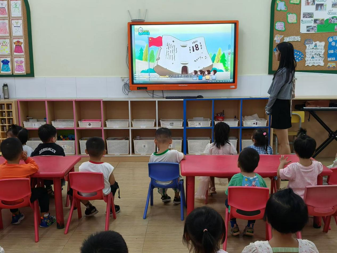 主题班会中,教师通过视频及图文资料向幼儿讲解1931年9月18日的历史事件及其深远意义,并强调防空警报的重要性,以此铭记历史,勿忘国耻。此外,幼儿园还组织幼儿观看红色经典电影,如《小兵张嘎》《鸡毛信》《闪闪的红星》和《英雄王二小》,让孩子们在观影中感受革命先烈的英勇事迹和崇高精神。