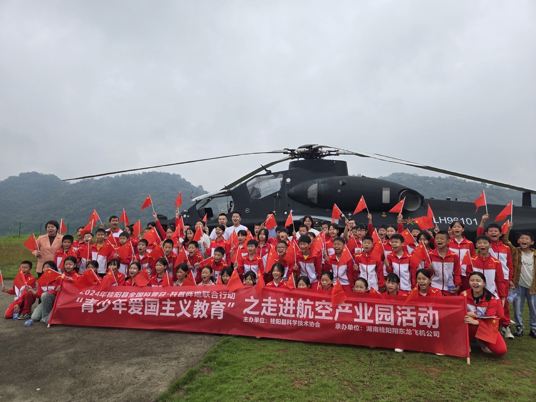 在桂阳县翔龙航空航天科普基地,69名学生走进民用飞行器生产车间,近距离感受低空飞行器的魅力。民兵教官向学生们科普了飞机零部件组成结构、我国近代飞行制造业发展等相关知识,并带领学生们参观P-40战斗机和枭龙FC-1战斗机模型,讲解武装飞行器的发展历史。