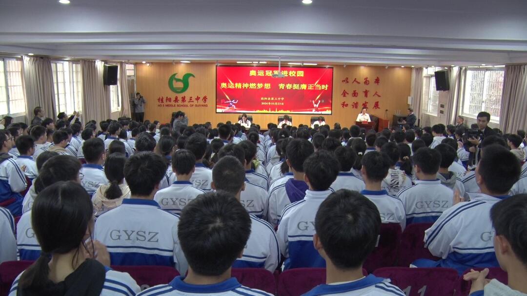 新桂阳10月23日讯(记者 方卉)今天上午,桂阳籍奥运举重冠军侯志慧、罗诗芳,残奥会田径冠军史逸婷回到母校桂阳三中、鹿峰中学,与师生们分享自己的冠军故事,共话青春梦想。