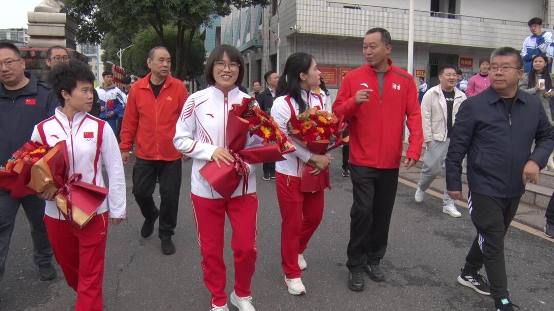 一大早,桂阳三中、鹿峰中学校门口热闹非凡,侯志慧、罗诗芳、史逸婷一现身,师生们便热情地喊着她们的名字,并送上鲜花和祝贺。随后,三位冠军还来到自己曾经训练过的体育场馆,亲自指导现场的运动员,向他们讲授运动的技巧与方法。