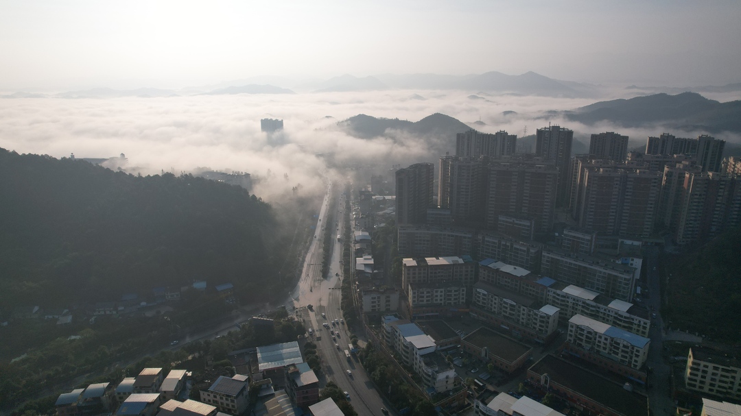 新桂阳10月25日讯 (记者 廖诗卉 通讯员 史纯华)秋日的清晨,我县城区上空被晨雾笼罩,氤氲的晨雾似一层乳白色的轻纱,为城市增添了几分诗意,整个城市仿佛置身“雾海”之中,如梦如幻,好似仙境。