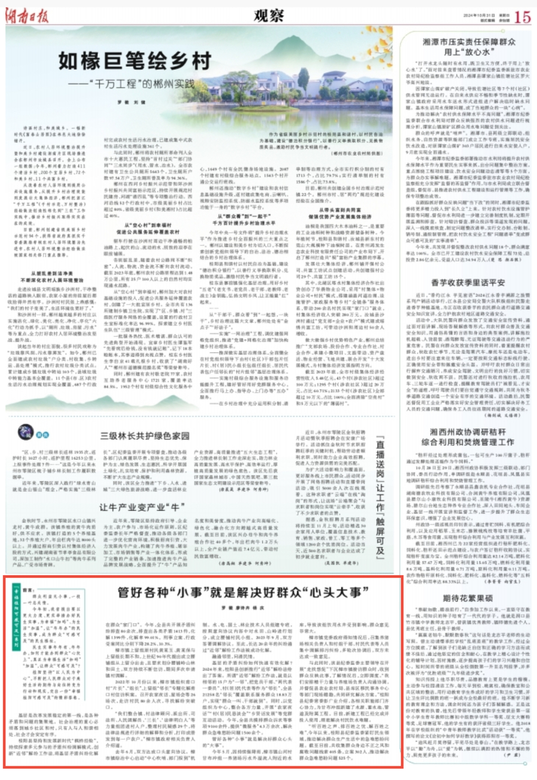 管好各种“小事”就是解决好群众心头的“大事”。