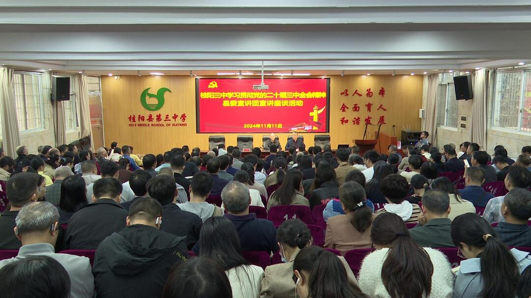 新桂阳11月12日讯(记者 刘克坚)11月11日,桂阳三中开展学习贯彻党的二十届三中全会精神宣讲活动。