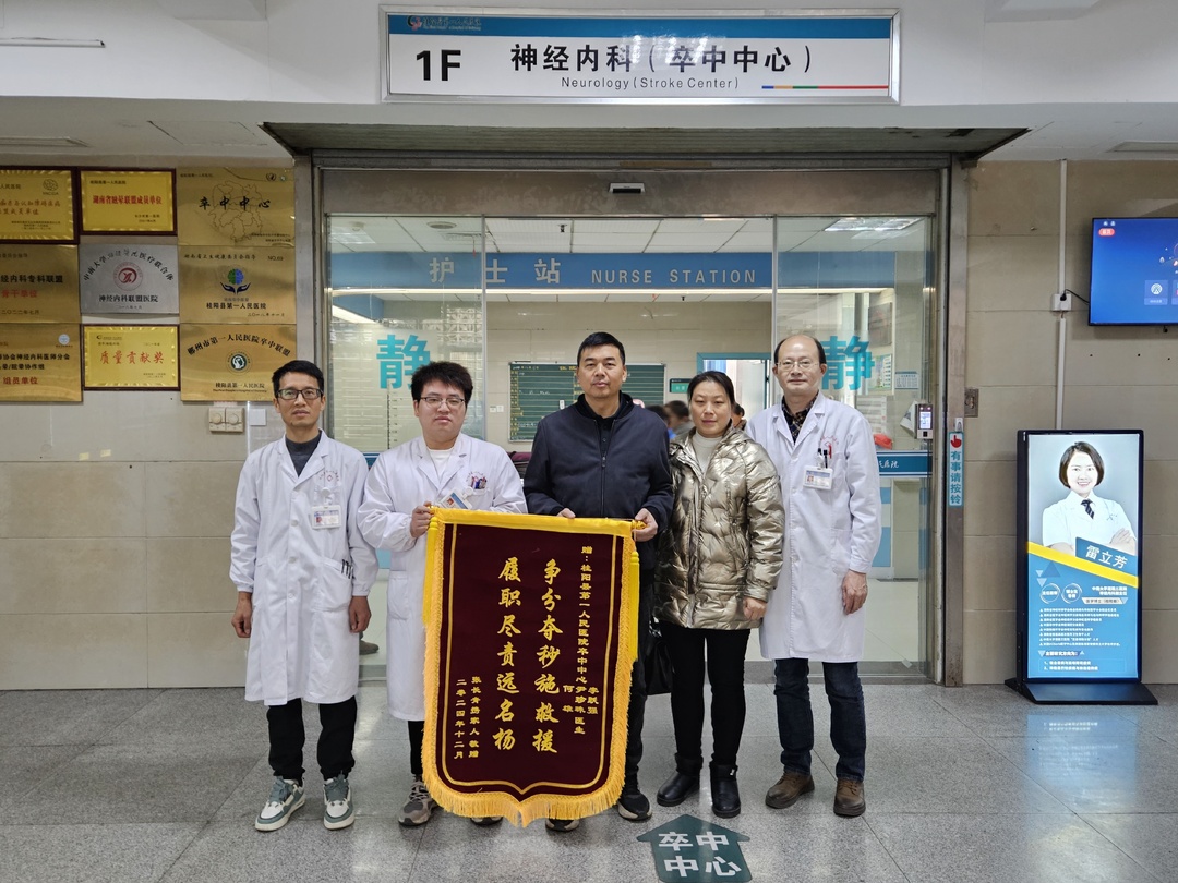 新桂阳12月16日讯(记者 李玮嘉)12月13日,县第一人民医院卒中中心暖意融融,一对夫妻将一面印有“争分夺秒施救援 履职尽责远名扬”的锦旗送给医务人员,感谢他们及时察觉病情、挽救生命。