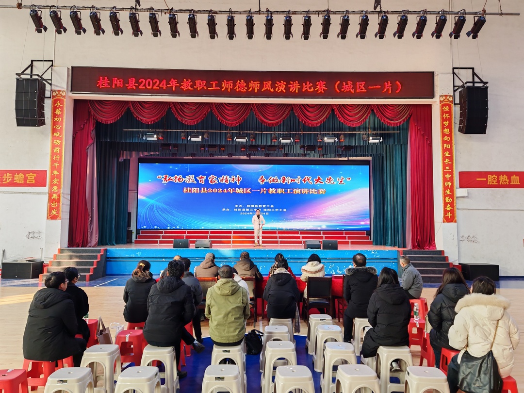 新桂阳12月24日讯(记者 周立志)今天,我县举行“弘扬教育家精神,争做新时代大先生”2024年教职工师德师风(城区一片)演讲比赛。