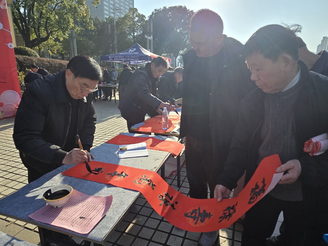 市民李碧琴:“我觉得写春联、迎新春是中华民族的传统习俗,然后今天在人流量这么大的广场上面也看到这样的场景,觉得非常的有年味,然后我也请在场的就是书法爱好者帮我家也写了两副,我觉得特别有意思,然后也看到了大家都非常开心的样子。”