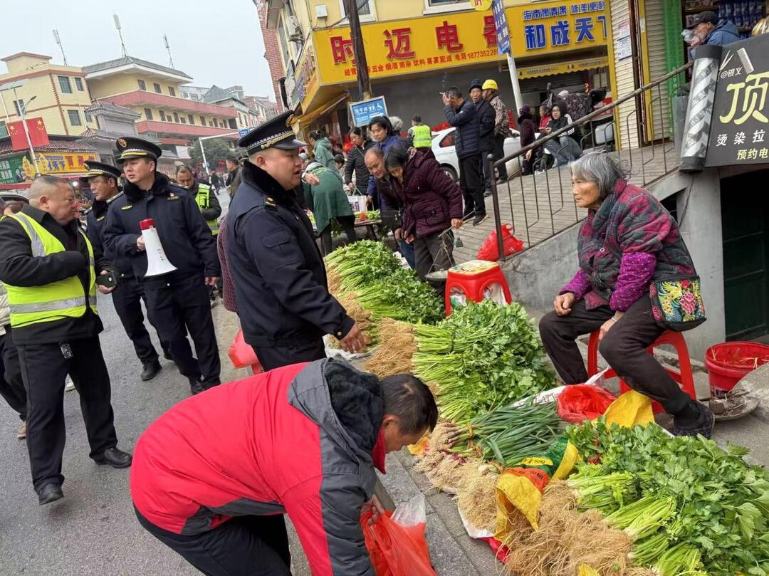 “请您将摊位往后移至黄线以内,收摊时记得清理地上的垃圾。”“师傅,麻烦尽快将车开走,此处不能停车,如需停车请左转前往停车场。”1月25日8时,执勤人员已在镇区农贸市场门口开展交通疏导工作,引导车辆规范停放,对马路边的摊贩进行清理整顿。