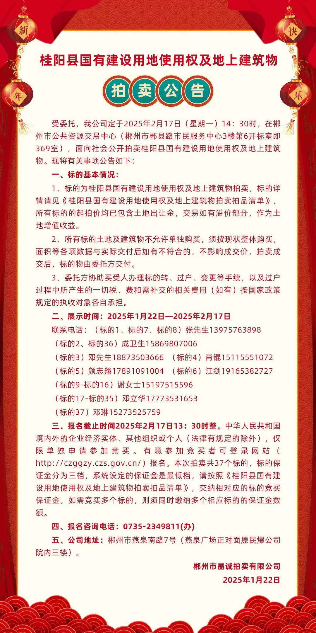 2025-01-27 10:23:19          来源:郴州市晶诚拍卖有限公司 | 编辑:方卉 |          浏览量:4136