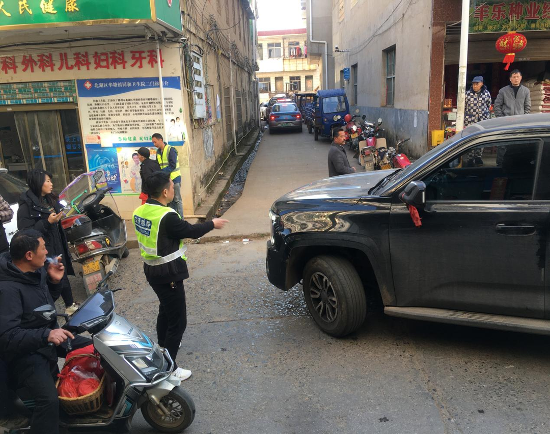 桂阳县樟市镇干部职工在团结圩安全劝导,疏导交通