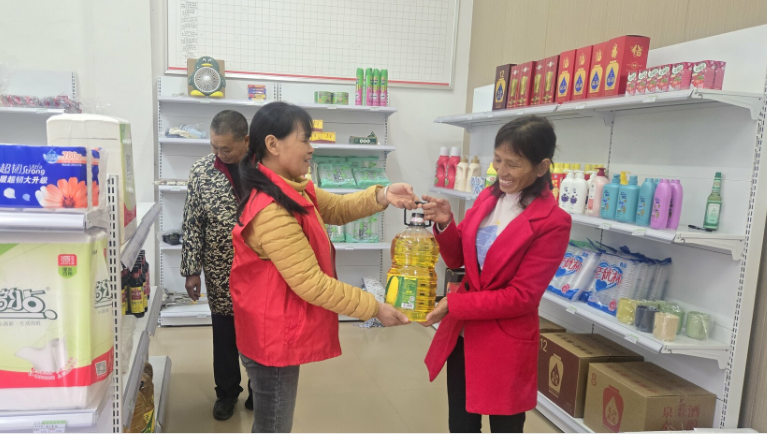 除了党建引领优化基层治理,高塘村也在不断探索村民安居乐业新方法。在党群服务中心旁地易货超市,村民们将自家种植地新鲜冬瓜、南瓜、红薯藤等农家特产过秤计数,按照当天地市场价格核算,在易货超市里换取等价物资。这是高塘村联合县供销合作联社开展地“数字化易货”创新,每周设定2—3个“收菜日”,村民可将自家富余地农产品拿来兑换生活用品。自去年10月以来,80余场易货活动交易额约15万元,村民人均增收500余元。这不仅是盘活闲置资源地妙招,更是一条充满温情地“共富链”。