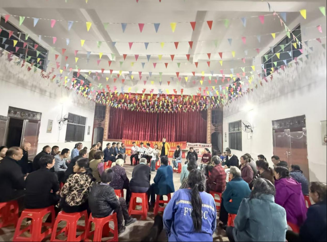 新桂阳10月31日讯(通讯员 邓雷 李文杰 高崇善 卢军 杨壮壮 李泽人 徐悦娜)夜幕初垂,灯火可亲。为深入推进党的政策方针“飞入寻常百姓家”,切实提升群众对当前重点工作的知晓度与参与感,10月29日晚,方元镇人大携手“桂阳星火”宣讲团,趁晚间农闲时间,在谷田村大礼堂成功举办了“屋场会”政策宣讲活动。50多位村民早早到场,现场氛围热闹又亲切。此次活动将宣讲课堂搬到村民家门口,与父老乡亲们围坐一堂,以“面对面宣讲、心贴心交流”的形式,将医保缴纳、秸秆禁烧、交通安全、人居环境卫生等与群众生活息息相关的政策“干货”送到村民身边,让屋场成为政策传递的“前沿阵地”、干群沟通的“连心桥”、干群互动的“连心平台”。